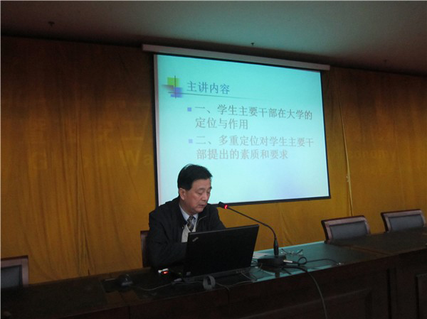 开学典礼结束后,校党委副书记丁养斌为学员们做了题为《学生主要干部在大学的定位、作用与要求》的报告。报告从“学生学习与生活”,“学校与学生关系”,“学校中心工作”,“辅导老师与学生干部的关系”,“学生活动组织”,“广大同学与学生干部的关系”以及“学校的教育”七个方面阐述了学生干部应起到的作用,从“多重定位对学生主要干部提出要求”出发,向学员们提出了六点要求与期望,同时结合大量的实例,便于学员理解与掌握。