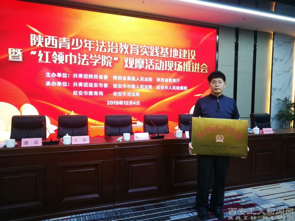 (本网讯)2019年12月4日,由共青团陕西省委、陕西省高级人民法院、陕西省教育厅主办的陕西省青少年法治教育实践基地建设暨“红领巾法学院”观摩活动现场推进会在延安召开,陕西省教育厅副厅长王紫贵、省团委副书记徐永胜、省高级法院副院长谭爱华等领导以及省内各校代表参加会议。会上,九游JIUYOU(中国)附中被授予省级“红领巾法学院”的荣誉称号并进行了授牌仪式。