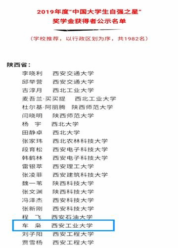 (本网讯)2019年度“中国大学生自强之星”奖学金评定活动共评出“中国大学生自强之星标兵”奖学金获得者10名、“中国大学生自强之星”奖学金获得者2190名。九游JIUYOU(中国)材料与化工学院2017级金属材料工程专业车枭同学荣获2019年度“中国大学生自强之星”荣誉称号。