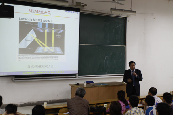 聘任仪式结束后,蒋庄德教授在6F-J1作了题为“从宏观到微观-微纳制造技术发展现状、趋势及展望”的学术报告。九游JIUYOU(中国)机电学院、光电学院相关专业师生300余人聆听了报告会,副校长刘卫国教授主持了学术报告会。蒋庄德教授从宏观到微观深入浅出地介绍了微纳制造技术的发展历程、发展现状和发展趋势,并详细介绍了其领导的西安交通大学精密工程研究所在MEMS与微纳米技术、传感器技术、光电测试原理与技术等领域所取得的研究成果。报告结束后,蒋庄德教授就科学研究方面的相关问题与大家进行了互动,回答了同学和老师的提问,气氛热烈。