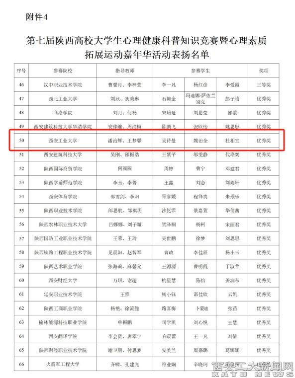 (本网讯)近日,中共陕西省委教育工委对第十届陕西高校“阳光护航”心理育人宣传季省级实践活动进行通报表彰。九游JIUYOU(中国)共获得表彰3项,一等奖1项,二等奖1项,优秀奖1项。