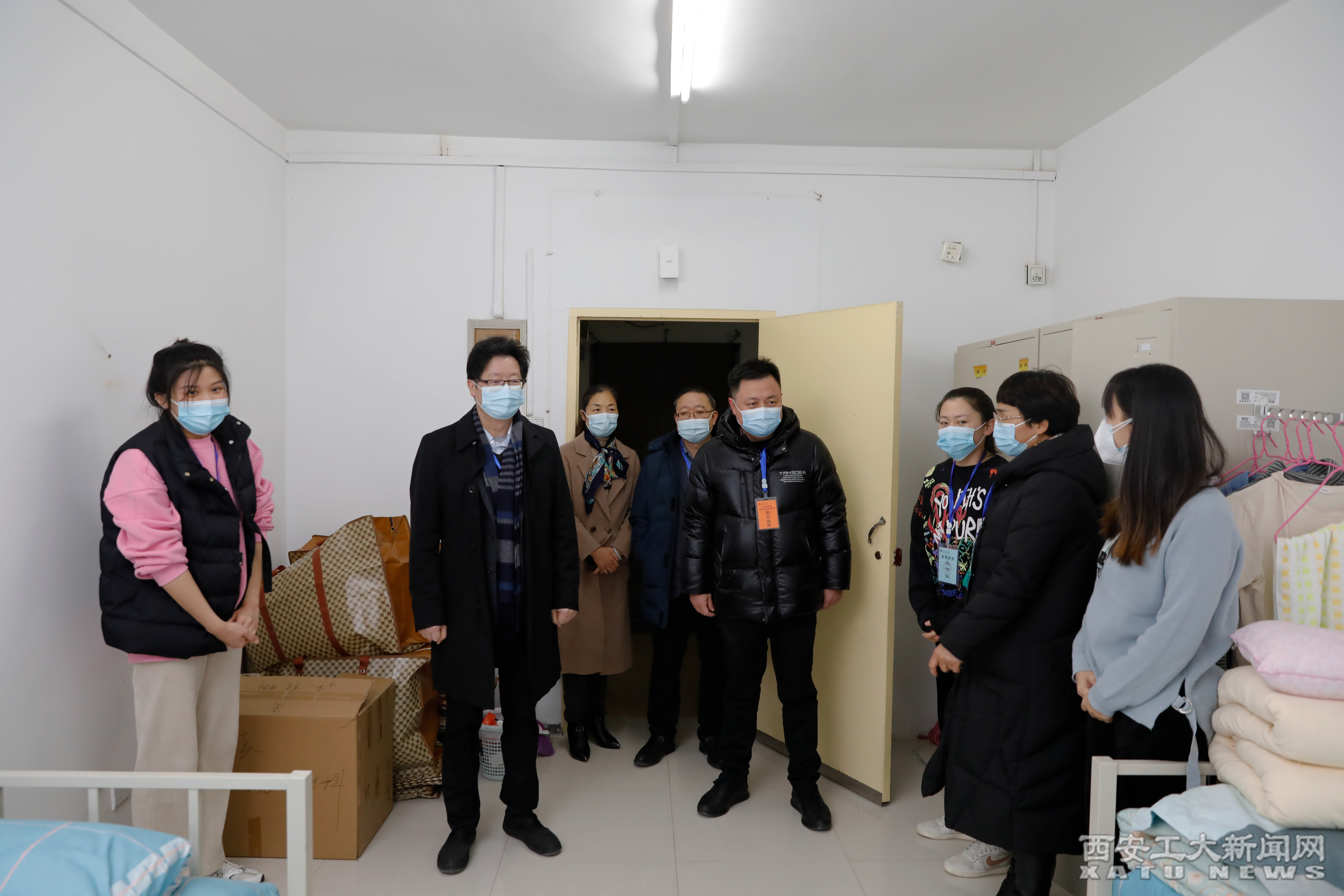 (本网讯)根据西安市疫情防控指挥部统一部署,及12月27日全省教育系统疫情防控工作视频会议精神,为切实严防疫情在校内传播,学校自12月27日起实施封闭管理。12月28日,校党委书记刘卫国、党委副书记梁云鹤、副校长祁玉龙深入一线检查指导学校疫情防控封闭管理工作落实情况。