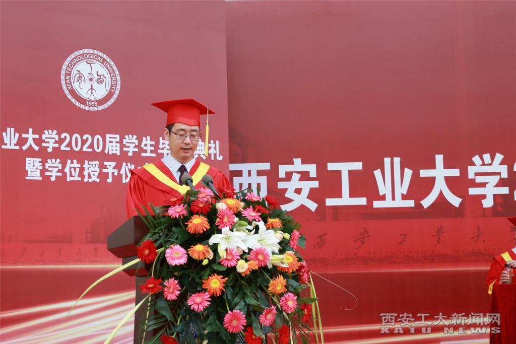 教师代表材料与化工学院陈卫星向圆满完成学业的2020届毕业生表示衷心祝贺和美好祝愿,希望毕业生们继续发扬“把一切献给党”的兵工精神,努力践行校风、校训,奋力创造持久而辉煌的人生。祝愿毕业生们前程似锦,心想事成。