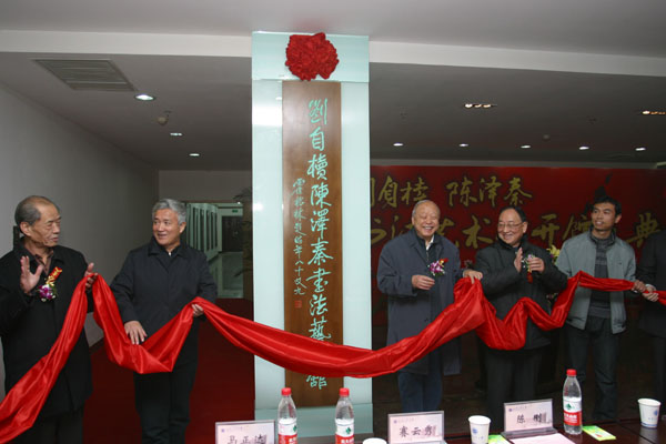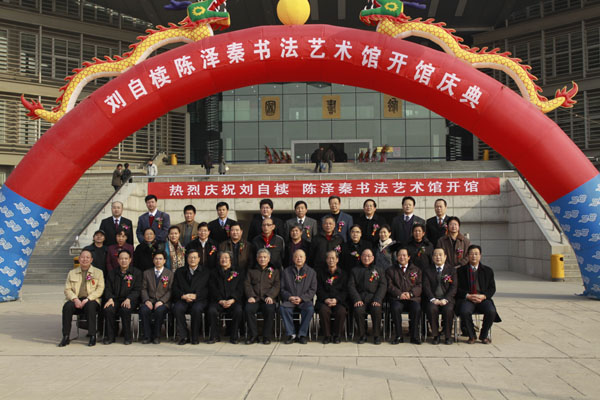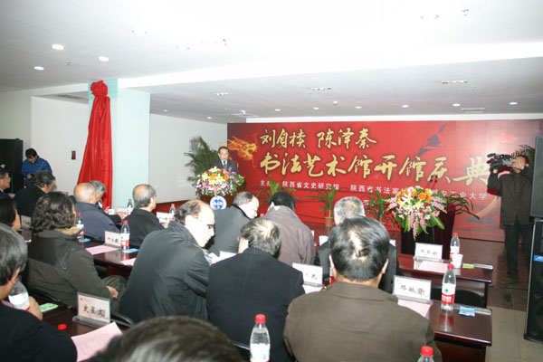 在庆典上,徐山林、张保庆、陈忠实、雷珍民、赛云秀、张君安和两位先生的亲属代表为书法艺术馆揭牌。
