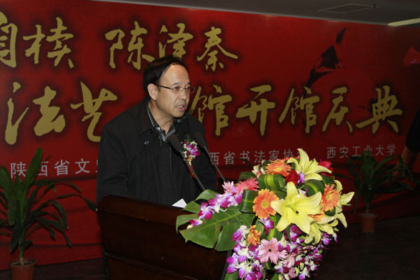 赛云秀在致辞中说:建立刘自椟、陈泽秦书法艺术馆是弘扬传统文化、加强校园文化建设和全面提高大学生文化素质教育的重要举措。校园文化建设在高校中是非常重要的一个项目,艺术馆的建成是九游官网在此方面的重要成果,搭建了缅怀、纪念、弘扬二老艺术成就的平台。书法艺术馆在建设中做到高品味与普及性相结合,科学性与艺术性相结合,将成为学校开展人文素质教育的基地,培养艺术专业人才的课堂,展示科技创新成果的平台,促进校园文化建设的阵地,树立西安工大文化形象窗口,成为校园文化建设的品牌和特色。