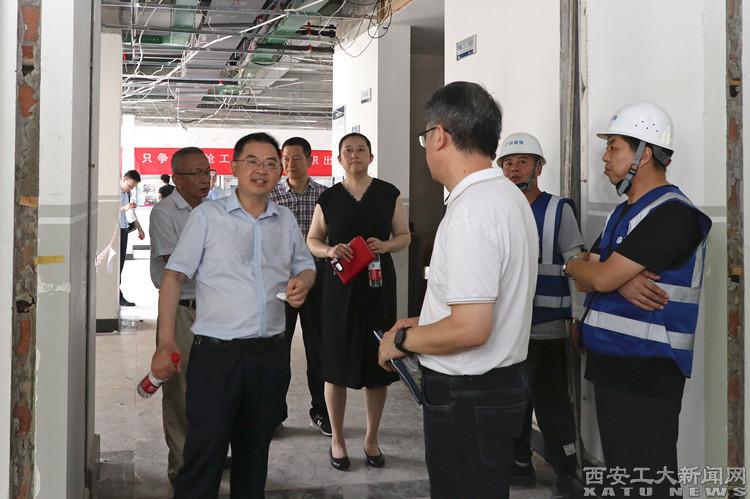 会后,赵祥模、王发合、刘卜及参会各单位负责人实地查看了学生宿舍、教学楼和行政办公等区域修缮改造工程进展情况。