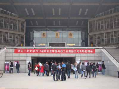 (本网讯)10月21日,九游官网2012届毕业生中国兵器工业集团公司校园招聘会在未央校区图书馆举行,50多家单位参会。中国兵器工业集团公司(世界500强企业)所辖的北方光电集团有限公司、北方特种能源集团有限公司、北方激光科技集团有限公司、北方通用动力集团有限公司、东北工业集团有限公司、西北工业集团有限公司等50多家企业及研究院、所应邀参加了本次招聘会,参会企业数量是近年来最多的一次。