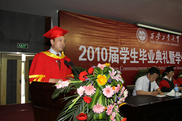 在2010届毕业生即将告别母校,满怀希望踏上新的人生里程之际,党委书记赛云秀代表学校向全校3780名毕业生表示最热烈的祝贺,向为同学们的成长付出辛勤劳动的各位老师和职工表示最诚挚的敬意,也向始终关注学生成长的亲友和社会各界人士表示最衷心的感谢。赛书记与全体毕业生一起回顾了大学四年来学校的发展变迁,并殷切希望同学们继承和发扬学校的办学传统,忠诚进取、努力成才;勤于学习、勇于实践、开拓创新;时刻坚守一份责任之心,甘于奉献,勇于担当。赛书记同时希望全体毕业生一如既往地关心母校的发展,母校也将始终关注同学们的成长成才。