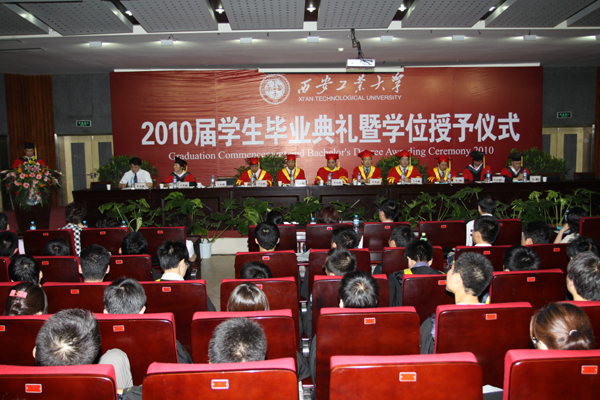 (本网讯)7月1日上午,九游官网在未央校区学术报告厅隆重举行2010届学生毕业典礼暨学位授予仪式。党委书记赛云秀、副校长张君安、党委副书记丁养斌、党委副书记于孟晨、纪委书记许尚年、副校长陈桦,党办、校办、团委、教务处、学生处、国际交流处(校友总会)等部门和院系领导出席了毕业典礼和学位授予仪式,部分学生家长也应邀来到仪式现场。