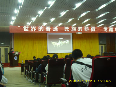 校党委副书记丁养斌、秦始皇兵马俑博物馆副馆长田静研究员分别在报告会上讲话。秦始皇兵马俑博物馆的4位专家分别作专题报告,向同学们讲解了秦始皇生平、秦始皇帝陵及其周边的陪葬品、写实的秦兵马俑、秦陵彩绘铜车马等相关知识,使同学们对秦始皇兵马俑有了进一步了解,也激发了他们的民族自豪感和爱国热情。专家们精彩的讲解,不时赢得一阵阵热烈的掌声和赞叹声。报告会结束后,同学们还纷纷向专家提出许多感兴趣的问题,专家们一一耐心作答。