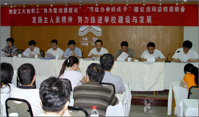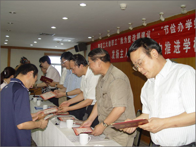 党委书记赛云秀做了大会讲话,他说,全校教职工在学校的本科教学评估中,人人参与,奋发争先,发扬“忠诚进取、精工博艺”的办学传统,努力践行“敦德励学,知行相长”的校训,评建工作取得了好成绩。专家评估结束后,工会随即开展的建议活动主题鲜明,凝聚人心,意义重大,使我们群策群力,趁势而上。七百余名教职工的参与充分体现了教职工的主人翁精神和对学校高度负责的态度。赛书记指出,学校要发展,要有一个和谐的氛围,学校和各部门都要努力营造让大家想干事、善谋事、能干事、干成事、不出事的环境,使大家敢讲真话,积极为学校的发展出谋划策。同时,在积极为学校献计献策时要注意讲政策、讲策略、讲方法、讲效果、讲创新,这样才能推动学校又好又快的发展。赛书记代表学校对积极参加此次活动的广大教职工表示感谢,并表示学校将对获得最佳建议的教职工给予奖励。