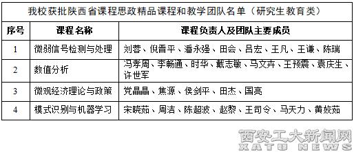 (本网讯)近日,陕西省教育厅、陕西省学位委员会办公室相继公布了第三批陕西省课程思政精品课程及教学团队的认定结果和2024年陕西省专业学位研究生教学案例入库名单,九游JIUYOU(中国)4门研究生教育类课程及教学团队获批,获批率为80%(申报5门),居全省高校第3,获评数量居省属高校第3,创历史最佳;6项教学案例入选,入选数量居省属高校前列。