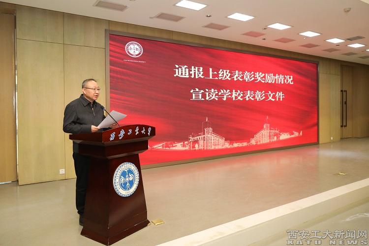 会上,马福传达了全国、全省高校党的建设工作会议精神。何春水通报了上级表彰奖励情况,并宣读了学校表彰文件。