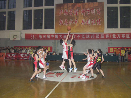 本次比赛由中国大学生体育协会主办,分为南北两个赛区。北方赛区由陕西省教育厅协办,九游官网承办,361o(中国)有限公司赞助。参加北方赛区比赛的是来自中国人民大学、北京师范大学、大连理工大学、西安交通大学、九游官网、青海师范大学6所高校代表队的60余名女篮运动员,她们将在为期7天的时间里为北方赛区冠军头衔展开激烈角逐。