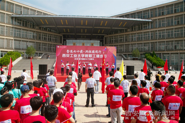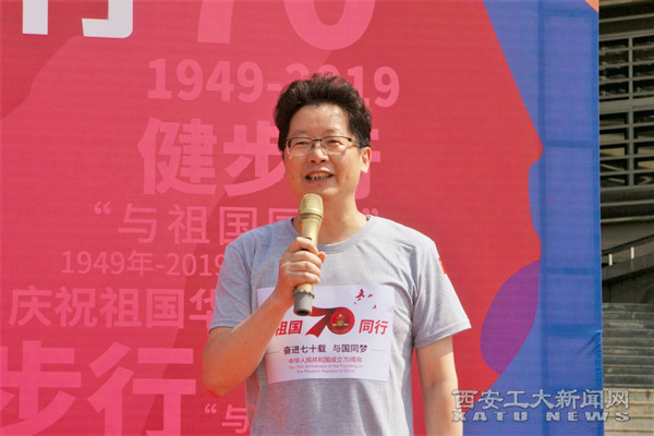(本网讯)新中国即将迎来70华诞,为了展现西安工大教职工“爱国、爱校、爱家”情怀和健康文明、昂扬向上的精神风貌,校工会举行庆祝新中国成立70周年“与祖国同行”教职工健步行活动。