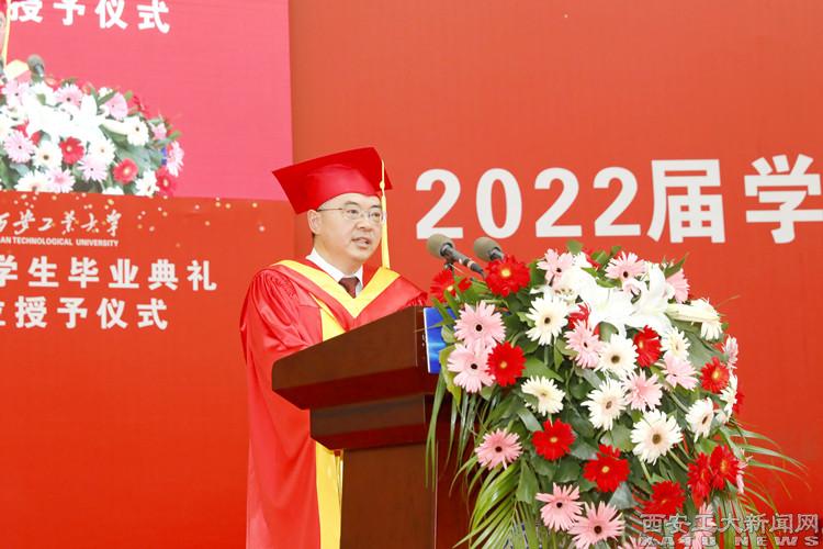 校党委书记刘卫国、校长赵祥模、校党委副书记王军周、校党委副书记梁云鹤、副校长刘发林、副校长刘卜、副校长陈建、总会计师段小存和杰出校友代表马永社出席本次典礼,学校相关职能部门和各学院负责人共同观礼,欢送5335名毕业生奔赴人生新征程。副校长张群主持典礼。