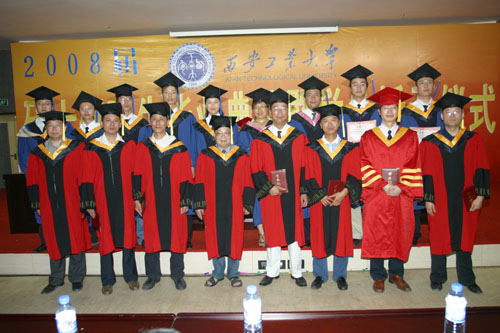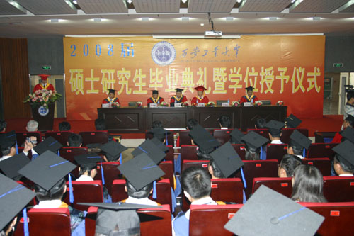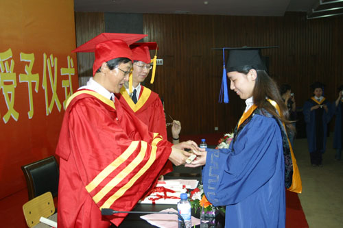 会上,刘卫国副校长宣读了学校关于授予2008届毕业研究生硕士学位的决定。今年,西安工大共有237名同学顺利的通过了论文答辩,获得了硕士学位。刘江南校长和刘卫国副校长为获得硕士学位的研究生逐个授予学位。经过严格的评审,本届研究生中共产生优秀硕士论文9篇,张君安副校长宣读了优秀硕士论文名单,校领导共同为优秀硕士论文获得者和指导教师颁发了荣誉证书。