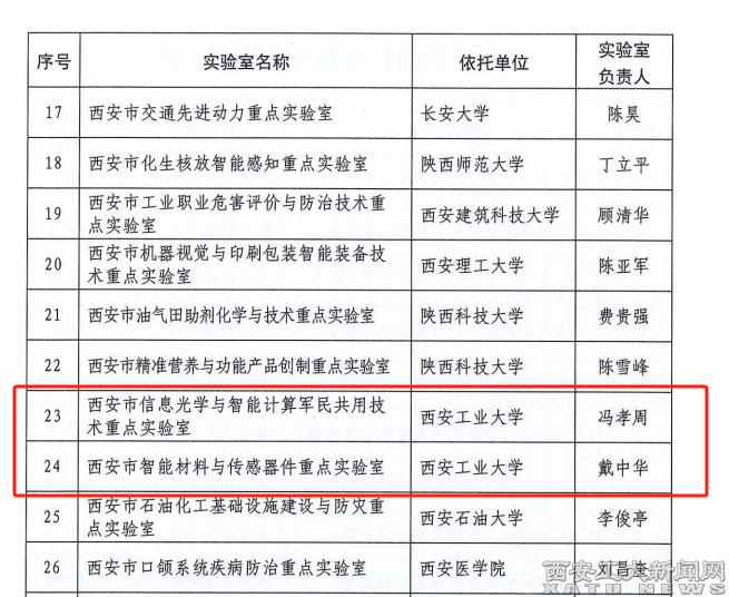 (本网讯)近日,西安市科技局印发了《西安市科学技术局关于认定2024年度市级重点实验室的通知》(市科发〔2024〕80号)、《关于认定第五批西安市国际科技合作基地的通知》(市科发〔2024〕87号)文件,九游JIUYOU(中国)基础学院冯孝周教授牵头申报的“西安市信息光学与智能计算军民共用技术重点实验室”、光电工程学院戴中华教授牵头申报的“西安市智能材料与传感器件重点实验室”获批2024年度西安市重点实验室,光电工程学院惠迎雪教授牵头申报的“西安等离子体先进光学制造国际科技合作基地”、机电工程学院董皓教授牵头申报的“西安精密传动与特种加工国际科技合作基地”获批2024年度西安市国际科技合作基地。