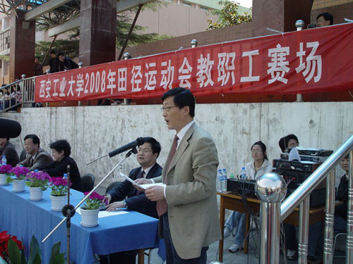 校长刘江南在致辞中说,今年是奥运年,奥运会传递着更高更快更强的奥林匹克精神,同时也传递健康生活的理念,希望广大教职工在工作之余加强锻炼,健康生活,健康工作,预祝本届运动会开成有序、和谐的体育盛会。