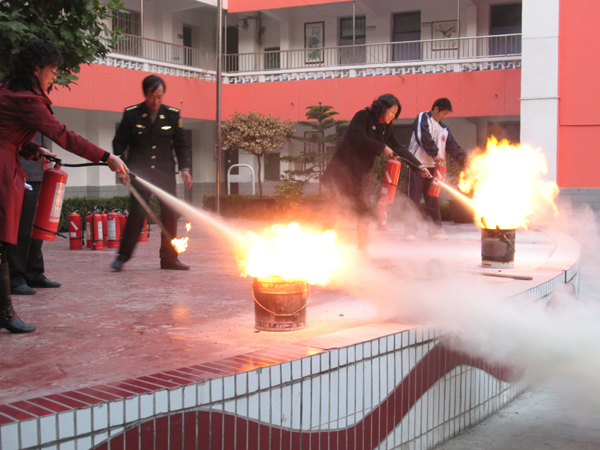 演练开始前工作人员准备工作准时到位,学生听到哨音后动作迅速,秩序良好。从火警警报响起到学生全部从教室撤离到校园安全区域,历时2分31秒,整个演练过程做到迅速、安全、有序。接着全体师生在操场集合后观摩了灭火器的使用方法及示范,教职工和学生分三组进行实战灭火演练,附中书记王文芳对演练情况进行了总结。