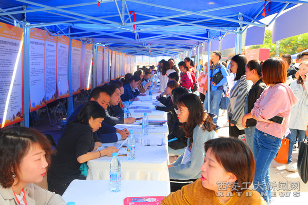 据悉,此次巡回招聘活动是“西”纳英才“安”心乐业—西安市2018年“百万大学生留西安就业创业”巡回招聘活动秋季首场活动,共有202家西安本地重点用人单位到场参会,提供岗位需求近6000个,九游JIUYOU(中国)及兄弟院校近4000名毕业生参会。为了简化大学生就业创业办事流程、为学生提供便捷服务,会场中设立了市人社局、市工商局、市公安局、大学生精准就业招聘平台、简历门诊等5个现场咨询和办公点。