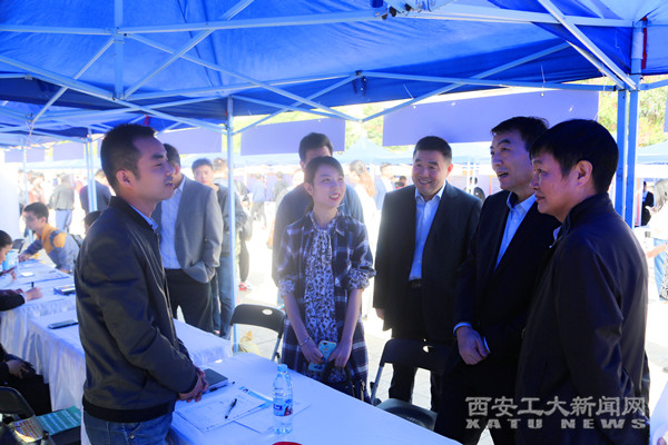 宣讲会后,与会领导来到招聘会现场,与毕业生和用人单位开展亲切交流,了解毕业生应聘求职感受、用人单位需求和咨询现场业务受理等情况。