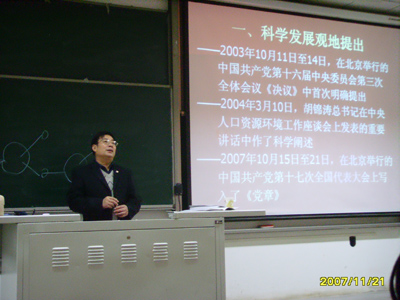 张书记给大家阐述了科学发展观提出的背景及重大意义、科学发展观的精神实质以及深入学习贯彻落实科学发展观的基本要求,鼓励大学生用科学发展观指导今后的职业生涯。同学们都表示这次报告很有指导意义。