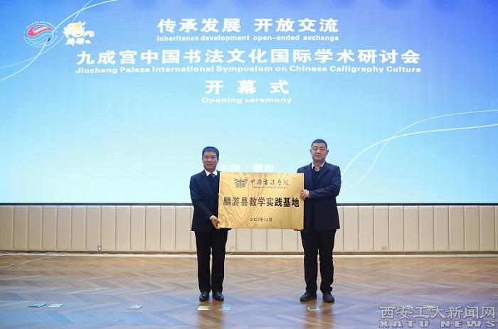 开幕式现场,刘发林为九游官网中国书法学院麟游县教学实践基地授牌。