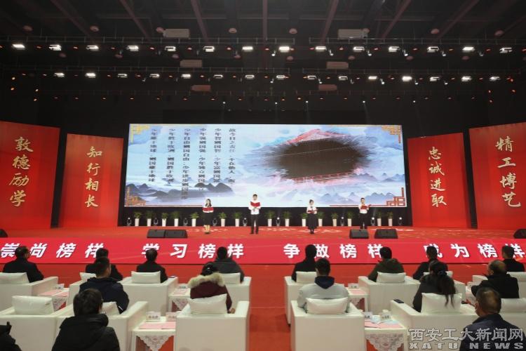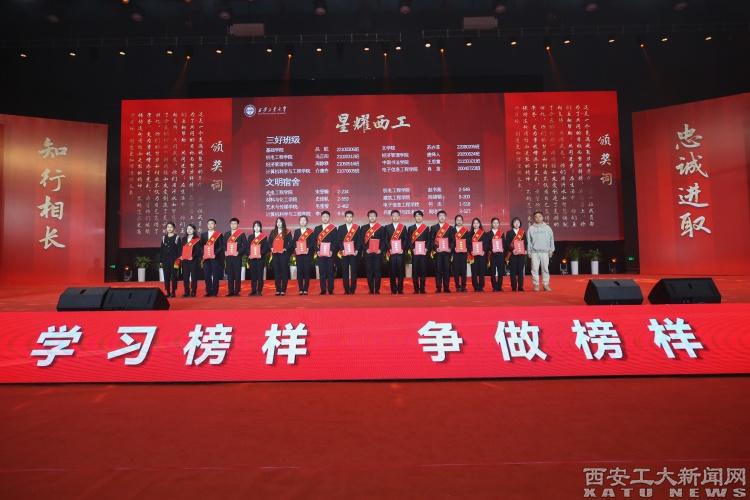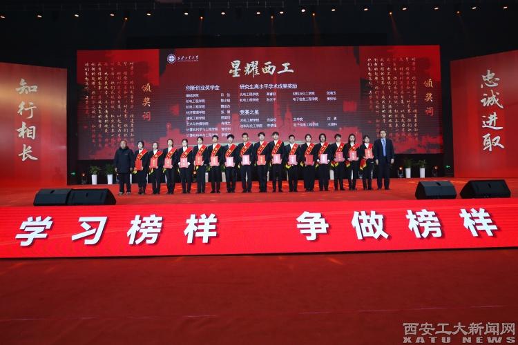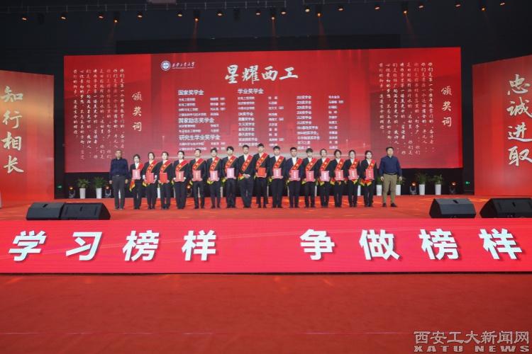 陕西省学生资助事务中心主任姬建鹏,西安机电信息技术研究所副所长聂峥,校党委书记刘卫国,校党委副书记、校长姚尧,校党委副书记梁云鹤,校党委副书记、纪委书记、省监委驻校监察专员王发合,校党委副书记马福,副校长刘发林、刘卜、张群出席本次典礼。设奖单位代表、用人单位代表、校友代表、家长代表,学校学生工作领导小组成员单位负责人,二级教授代表、教学名师代表、师德标兵代表、学生最喜爱的教师代表、服务保障人员代表,各学院主要负责人、党委副书记、辅导员,2023年获奖学生代表以及学生代表,一同聆听“九游官网之星”的故事,见证“九游官网之星”的风采。
