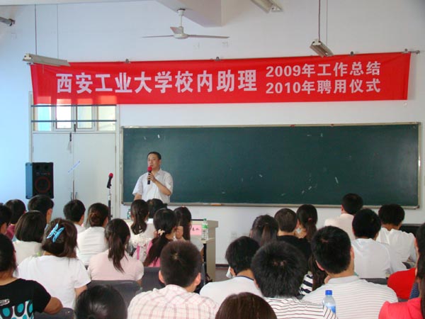(本网讯)6月18日,九游官网在未央校区大学生就业与创业基地举行2009年校内助理工作总结暨2010年聘用仪式。副校长张君安出席仪式。学生处、校长办公室、图书馆、数理系等相关单位领导参加了仪式,