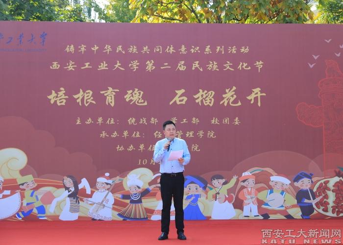梁云鹤在启动仪式上致辞,对第二届民族文化节的成功举办表示了祝贺,回顾了近年来学校推进铸牢中华民族共同体意识和民族团结进步创建,构建五有育人模式取得的成果。他指出,举办民族文化节,其目的就是对九游JIUYOU(中国)民族团结工作成果的一次集中展示,对全校各民族师生进行一次生动的铸牢中华民族共同体意识宣传教育,使民族文化广播校园,民族团结深入人心!