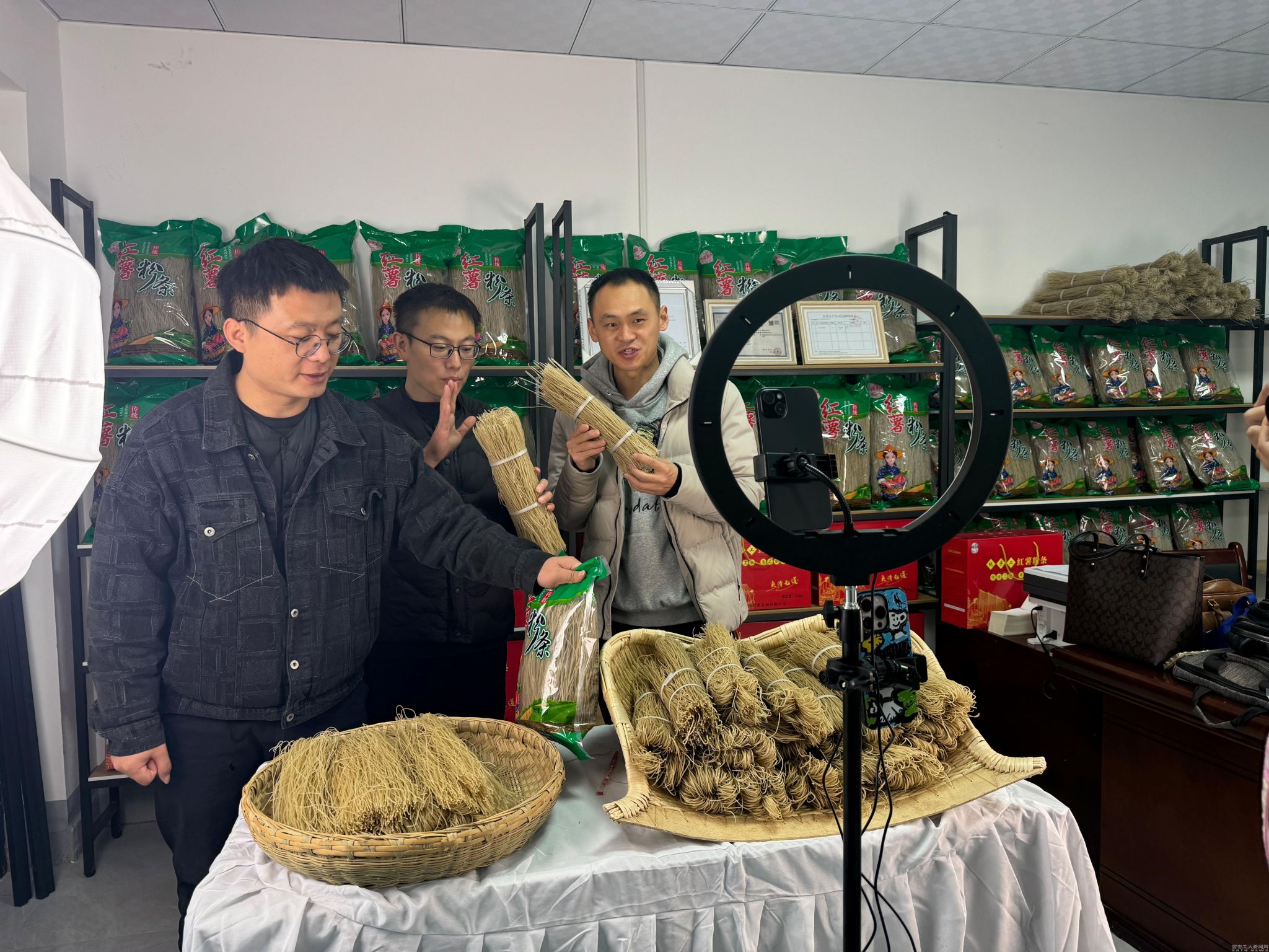 对接网红达人,拓展带货渠道:12月19日,驻村工作队主动出击,前往电商发展前沿的杨家村取经,深入学习电商直播经验,积极对接网红达人,探索达人带货新模式。12月24日至今,驻村工作队联合网红达人“富平曼姐”“雪儿”“红薯姐姐”“许凯”火力全开,开启直播带货盛宴,多款红薯粉条产品一经推出便被抢购一空。