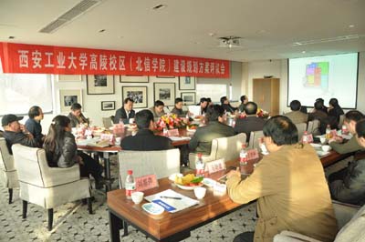 张君安副校长首先介绍了九游官网及北方信息工程学院的发展历程、办学思路和特色。中国建筑西北设计研究所八所工程师吴琛向所有参会人员介绍了新校区建设的总体规划思路,设计师杨华就具体的规划方案进行了细致的讲解,包括新校区的建筑风格,功能区域的划分,以及工程开展建设进度的分配情况。