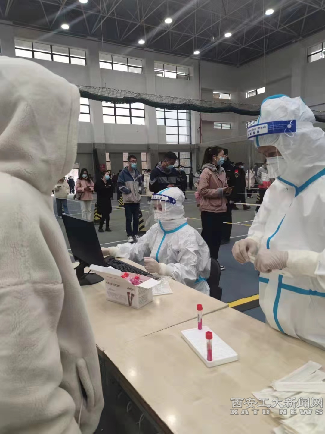 校医院党员栾芳玲在朋友圈分享的一张张照片让人潸然泪下——由于校内人手不足,刚值完24小时班的同志没有休息,直接再次投入到校内全员核酸检测工作中;12月份的西安天寒地冻,已连轴工作数十个小时的医务工作者身体不适却继续坚持,只因不愿浪费一身防护服,不愿影响核酸检测的速度;趁着网络故障抓紧时间闭目休息十几分钟;紧闭密封的防护服在冬天却一点也不暖和;口罩的绷带将耳朵勒出道道血痕;人可以累得有一个支撑点就能够陷入沉睡……无论是风雪交加的白天,还是万籁俱寂的深夜,医务工作者们听候指令、随叫随到,她们成了这场战“疫”中最英勇的战士。