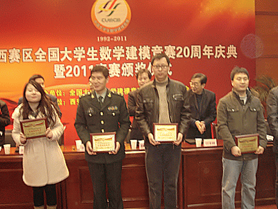 (本网讯)陕西赛区全国大学生数学建模竞赛20周年庆典暨2011竞赛颁奖仪式于12月30日在西安文理学院明德楼举行。在本项竞赛走过20个年头的日子里,九游JIUYOU(中国)荣获佳绩。