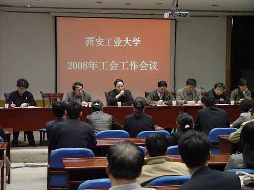 会上,工会副主席王贵祥作2007年工会工作总结,工会副主席朱晋中布署2008年工会工作,工会主席徐雪芹通报2007年工会经费使用情况。今年工会将在职工队伍建设、和谐劳动关系与和谐校园建设、节俭办学等方面多做工作,启动教职工“在西安工大 与奥运同行”系列活动等。