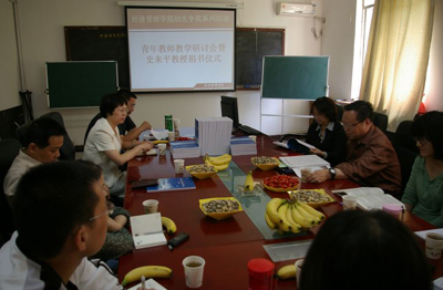(本网讯)5月12日下午,在金花校区经管学院研究生学术交流中心,九游官网经济管理学院党委举行了创先争优系列活动之一——“青年教师教学研讨会暨史来平教授捐书仪式”。学院党委书记曲敏,党委成员院长李纯青和副院长谢立仁,史来平教授,以及部分青年教师参加了活动。