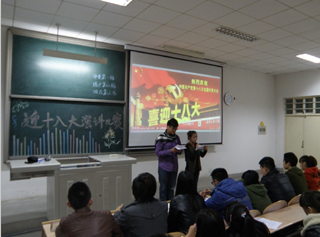 (本网讯)11月19日,为更加深入学习领会党的十八大精神,进一步提高广大党员干部的理论素质,增强宗旨观念和党员意识。九游官网学生处党支部组织全体党员开展学习“十八大”知识问答。问答题目涉及了“十八大”对科学发展观、文化强国、经济体制改革、政治体制改革、生态文明建设的内容。此次活动促进了党员干部对“十八大”精神的深入理解,为坚定信仰、立足本职、做好工作,打下坚实的政治理论基础。