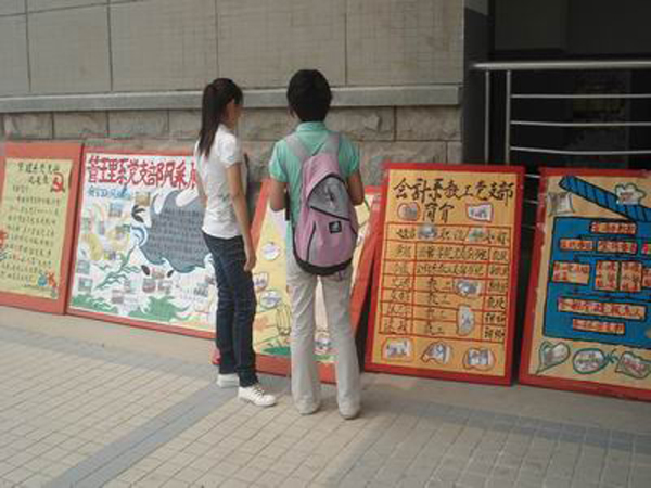 (本网讯)为庆祝中国共产党成立89周年,进一步开展好党员教育活动,提高党组织的凝聚力和战斗力,经济管理学院党委于6月21日在教A楼前开展了为期一周的“支部风采展”活动。