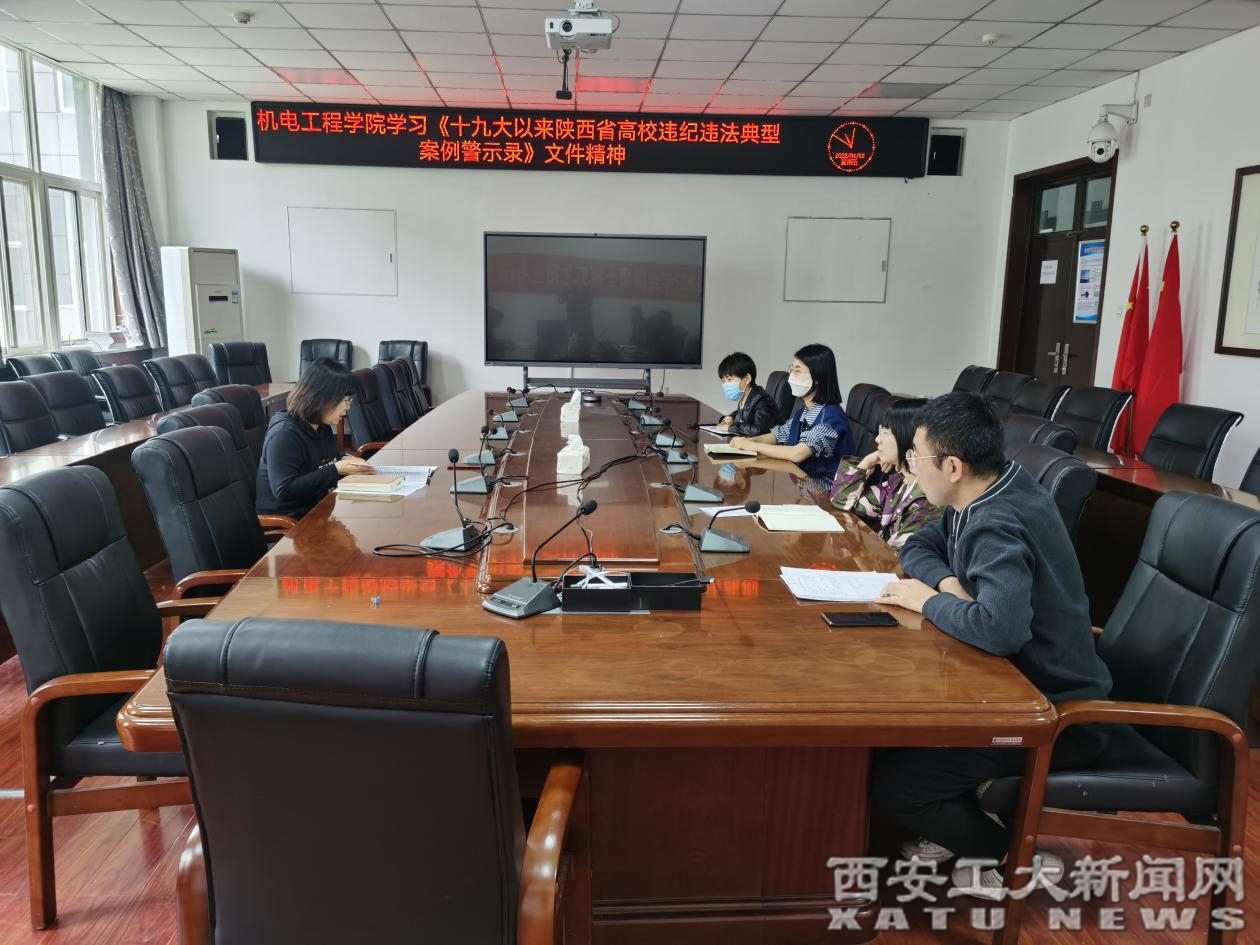 (本网讯)为筑牢党员干部思想防线,加强党员干部的拒腐防变意识,4月22日下午机电工程学院党委召开学习《十九大以来陕西省高校违纪违法典型案例警示录》专题会议,党委委员、纪委委员、辅导员参会,会议由院党委书记路金龙主持。