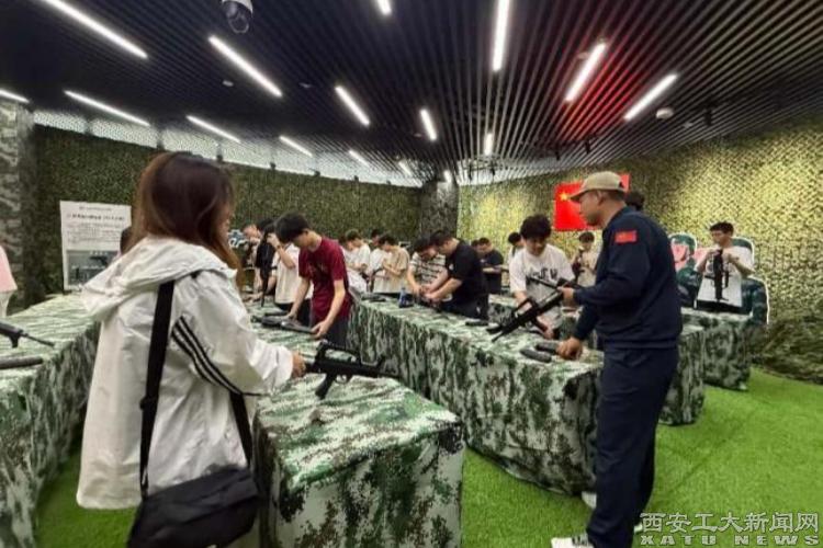 互动体验环节,同学们迎来了沉浸式实践挑战。专业教官指导下的拆枪训练中,大家分组协作拆解经典枪械,细致观察零件间的精密咬合,感受兵器制造对材料性能、加工精度的严苛要求。“原来枪管的耐磨性与材料的晶粒度息息相关!”一名材化学院学生在实践中兴奋地分享专业发现。随后的情景模拟打枪练习,逼真的战场音效与虚拟对抗场景,让同学们身临其境地体会到军人保家卫国的责任担当。