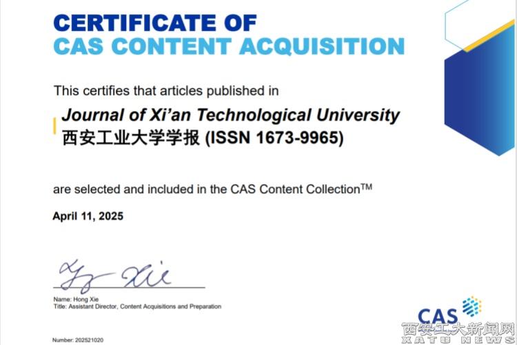 (本网讯)近日,《九游官网学报》通过前期申报,经美国化学文摘社(Chemical Abstracts Service,CAS)专家评估委员会严格评估后,最终被全球权威数据库美国化学文摘社数据库(CAS)正式收录。此次收录将进一步提升《九游官网学报》的期刊国际影响力和传播力。