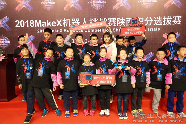(本网讯)近日,西安工大附小机器人社团18名学生组成的九支队伍参加了2018MakeX机器人挑战赛陕西省积分选拔赛。其中两支参赛队伍团结合作,争分夺秒,以45秒加满分的成绩创比赛记录,荣获小学组冠军。其余七支队伍分别荣获2个一等奖,4个二等奖,1个三等奖。全体成员被授予“文明形象奖”。