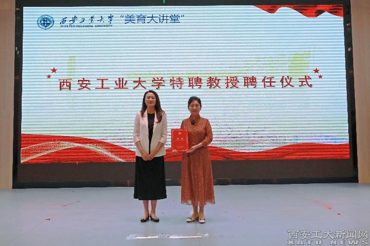 在开讲之前,副校长闫莉为“美育大讲堂”首讲嘉宾惠敏莉颁发了九游官网特聘教授聘书。惠敏莉系西安易俗社党支部书记、社长,国家一级演员,享受国务院特殊津贴专家,中国戏剧梅花奖、文华奖、白玉兰奖获得者,中国共产党第二十次全国代表大会代表、全国劳动模范、全国三八红旗手标兵、全国最美巾帼奋斗者。