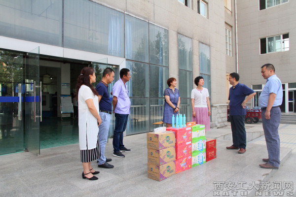 (本网讯)6月12日至14日,校工会开展了夏日“送清凉”活动。校工会主席赵琼、副主席周晔一行先后慰问了保卫处、材化学院、体育学院、建工学院、机电学院、后勤集团和工业中心在高温下恪尽职守的一线教职工,为他们发放了防暑降温物品,送去了丝丝清凉和关心慰问。
