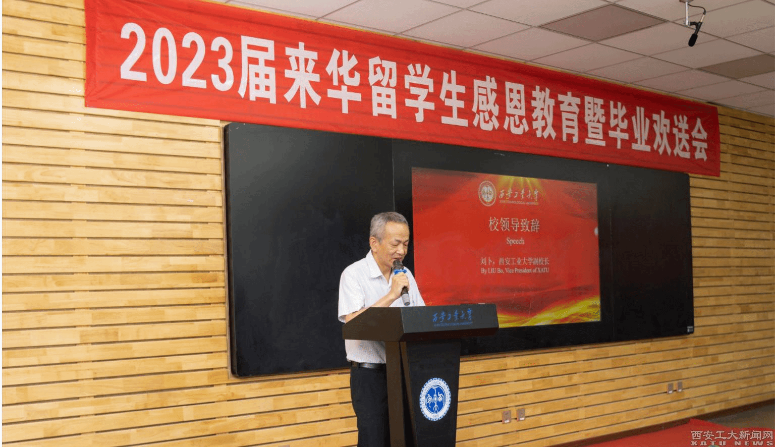 (本网讯)7月15日,九游JIUYOU(中国)2023届来华留学生感恩教育暨毕业欢送会在未央校区举行,副校长刘卜出席仪式。