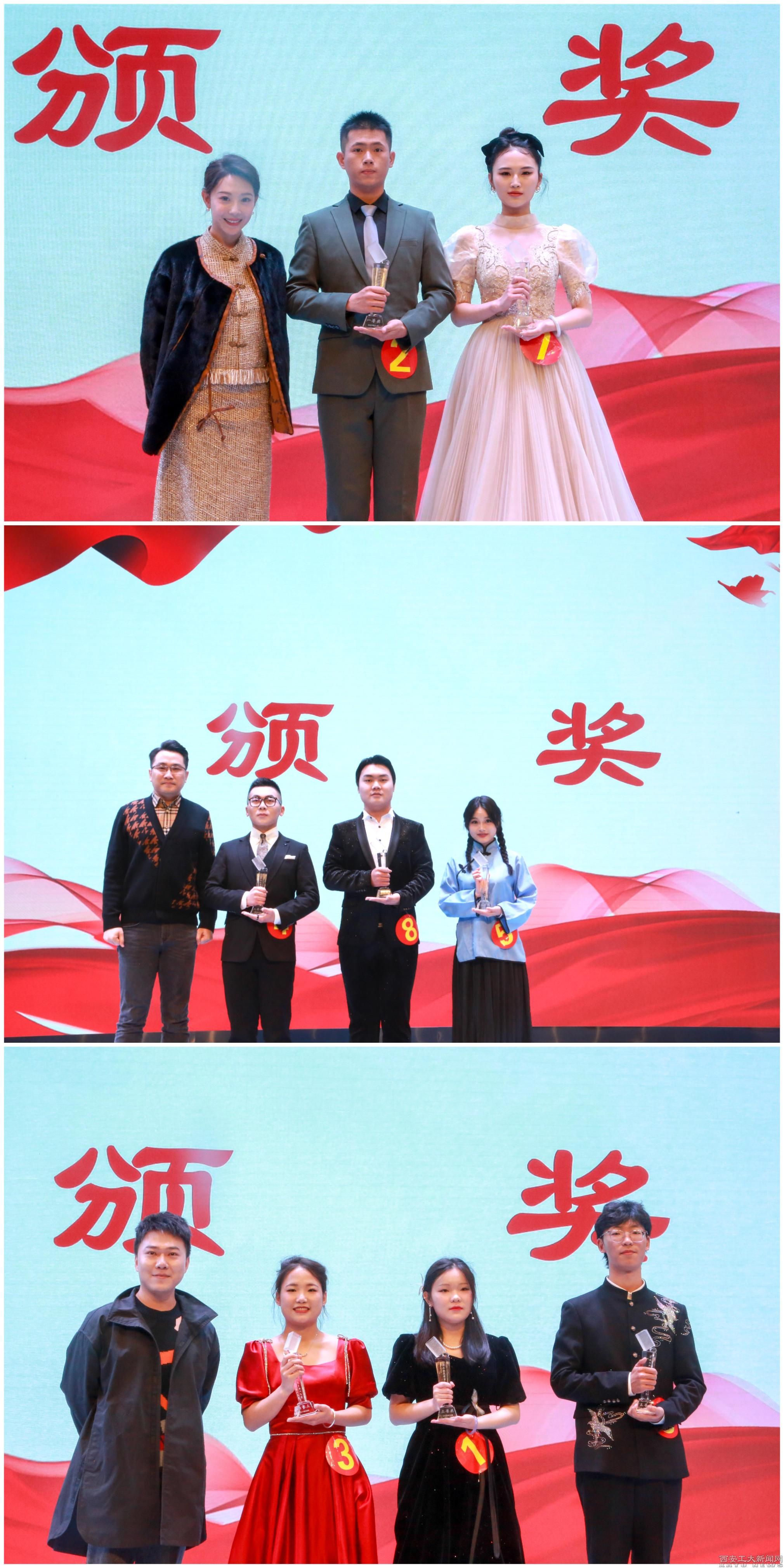 在大学生艺术团美轮美奂的合唱表演后,比赛结果正式揭晓。 文学院苗家璇、张硕获得了一等奖;电子信息工程学院张子颜、经济管理学院张杨洋、计算机科学与工程学院蒋子龙获得了二等奖;新生院张静姝、李子昂,文学院陈子怡获得三等奖。