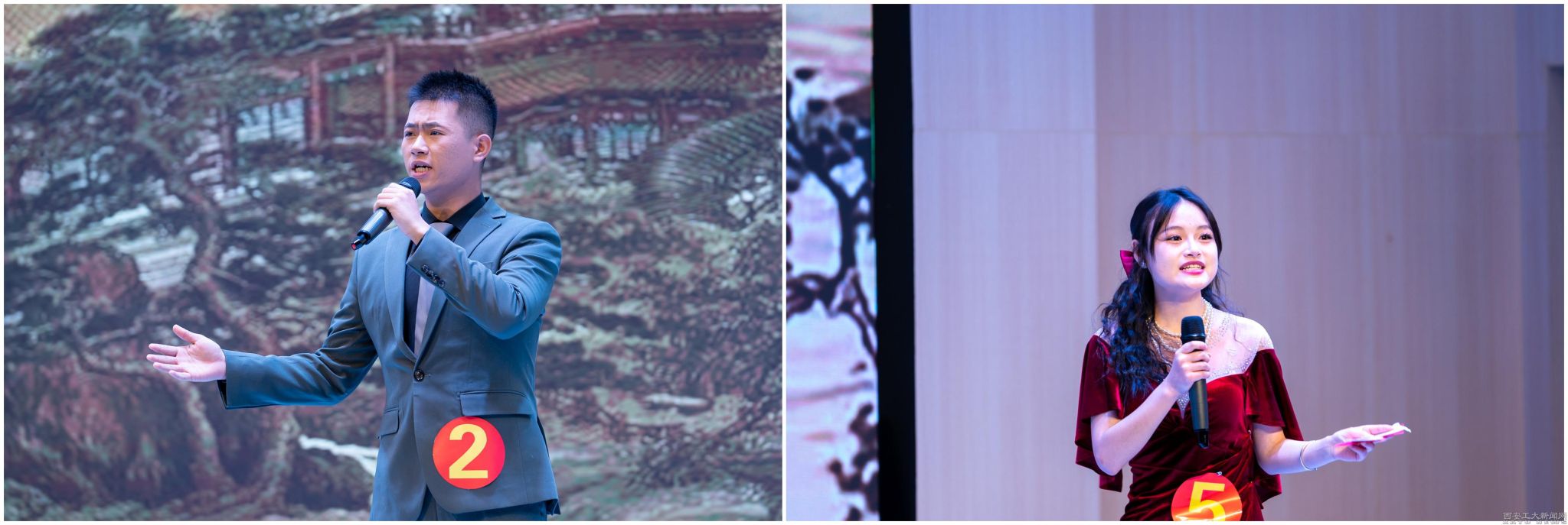 经过激烈的层层选拔,来自全校各学院的八名选手披荆斩棘,站在了决赛的舞台上。大赛分为自我介绍、模拟主持、才艺展示三个环节。