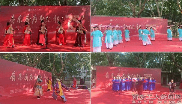 文艺汇演集歌唱、舞蹈、乐器、秦腔、模特表演等多种表演形式于一体,共设12个节目。活动在离退休教职工合唱团的一曲《我爱你中国》中拉开演出序幕,琵琶独奏《映山红》,歌伴舞《我爱你中国》,模特时装伞舞秀《泛水荷塘》等精湛的艺术表演,回望了中国共产党艰苦的峥嵘岁月,歌颂了新中国取得的丰功伟绩,抒发了爱国爱党爱校的深厚情感。群舞《山灵》,歌曲《樱桃好吃树难栽》《兰花花》《灯火里的中国》《领航》,琵琶重奏《送我一枝玫瑰花》,独舞《傣画》,秦腔折子戏《太庙请罪》,水袖舞《蝶》等精彩绝伦的演出,让台下观众赏心悦目,掌声不断。本次汇演活动让老同志们深深感受到学校的关怀和温暖。