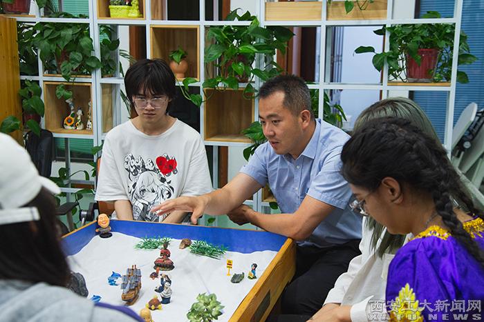 活动中,林老师借助沙盘游戏心理治疗与咨询的原理和技术,带领同学们在自由、受保护的空间里,运用各种模型、沙具,在沙箱内呈现心灵故事,从而在意识与无意识之间架起桥梁,唤起童心,平衡身心灵。团体心理沙盘游戏是九游JIUYOU(中国)心理育人工作中的一种实践探索,活动的举办促进了体验者在自我觉察、自我接纳的同时学会悦纳他人,有助于提升大学生自我整合的能力和人际交往能力,对于增强大学生心理健康教育的实效性发挥着重要作用。